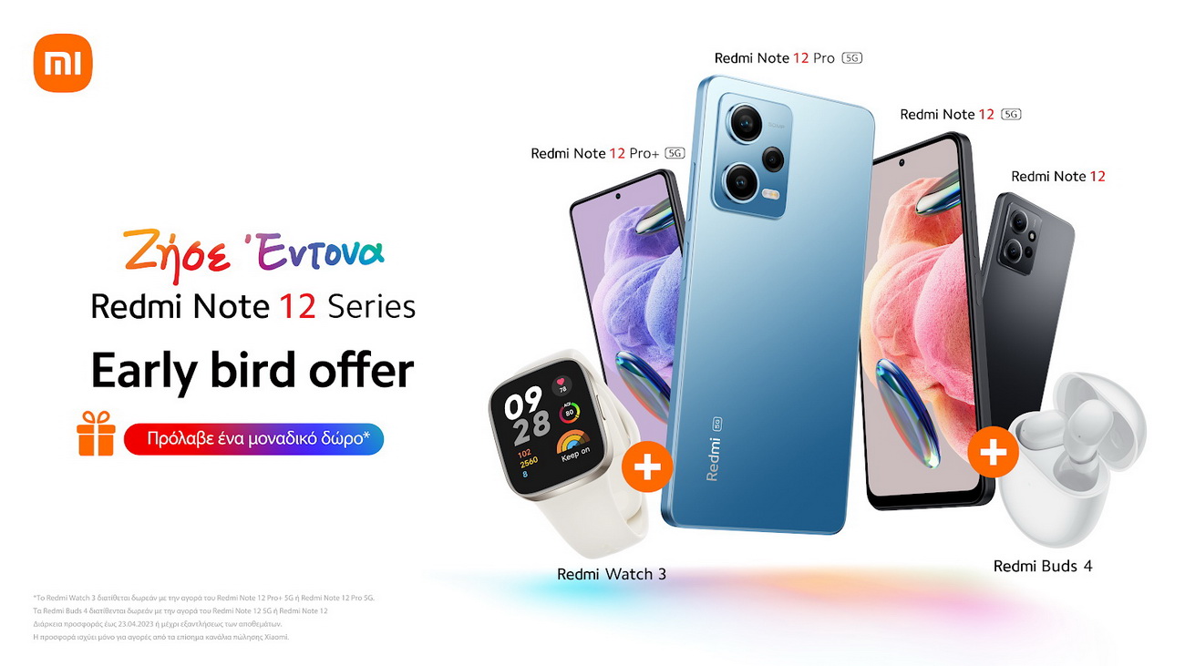 Η Xiaomi ανακοίνωσε την διάθεση της πολυαναμενόμενης σειράς Redmi Note 12 στην Ελληνική αγορά. Η αγαπημένη σειρά περιλαμβάνει τα Redmi Note 12 Pro+ 5G, Redmi Note 12 Pro 5G, Redmi Note 12 5G, το Redmi Note 12 και το Redmi Note 12S.