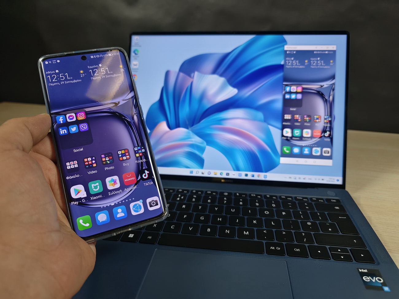 Και εδώ υπάρχει το NFC για άμεση σύνδεση του κινητού αν αυτό είναι Huawei φυσικά. Αυτή την λειτουργία όπως καταλαβαίνετε την χρησιμοποιώ καθημερινά καθώς με ένα άγγιγμα μπορώ να κάνω drag n drop τα αρχεία μου από το κινητό στο PC και το αντίθετο.