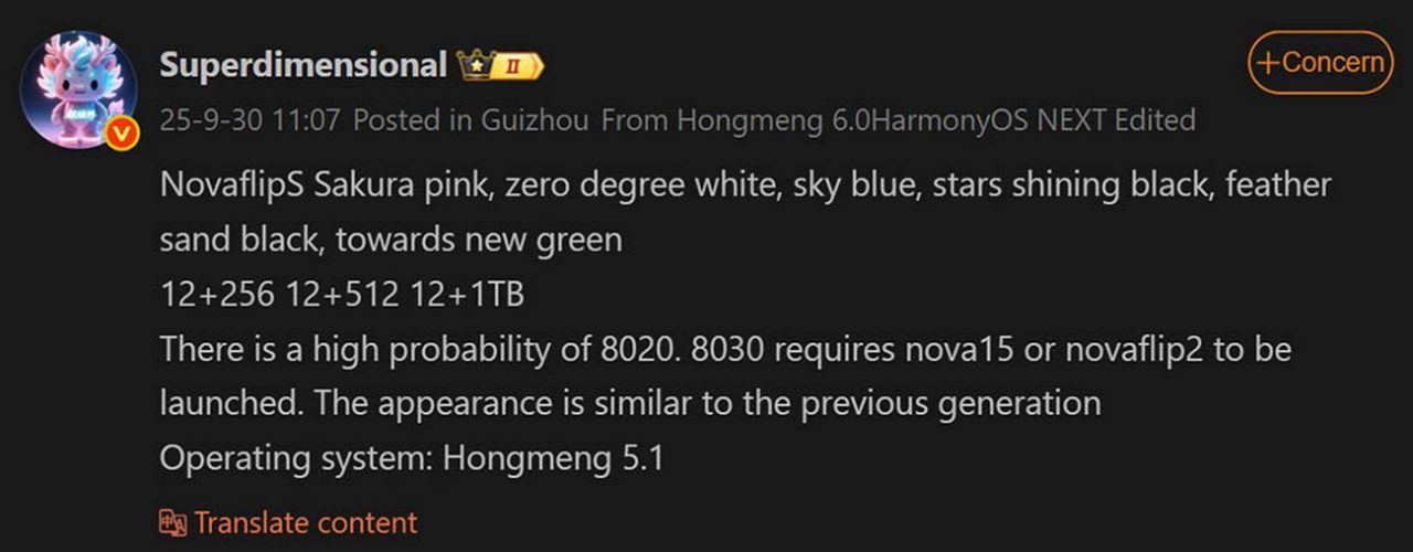 Όσον αφορά το λειτουργικό σύστημα, το Nova Flip S πιθανότατα θα τρέχει το HarmonyOS 5.1.