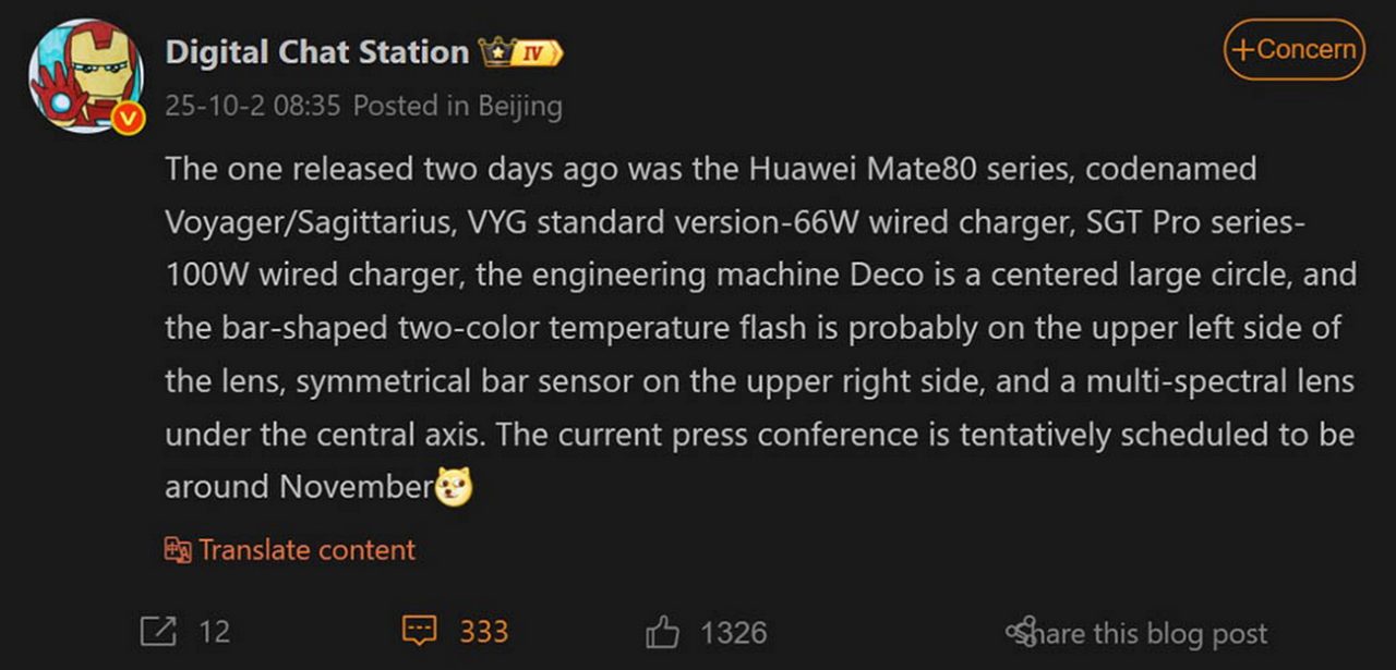 Σύμφωνα με τον @DigitalChatStation, τρία νέα κινητά που έκαναν την εμφάνισή τους στον ιστότοπο 3C με τις κωδικές ονομασίες Voyager και Sagittarius είναι στην πραγματικότητα τα τρία μοντέλα της σειράς Huawei Mate 80.