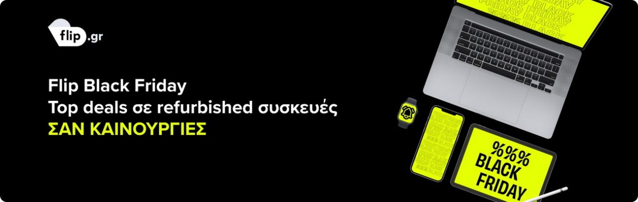 Με το σύνθημα «Η πιο έξυπνη επιλογή είναι μια συσκευή ΣΑΝ ΚΑΙΝΟΥΡΓΙΑ, σε TOP Black Friday τιμή!», το flip.gr προσκαλεί όλους να αναβαθμίσουν τη συσκευή τους έξυπνα, οικονομικά και βιώσιμα.