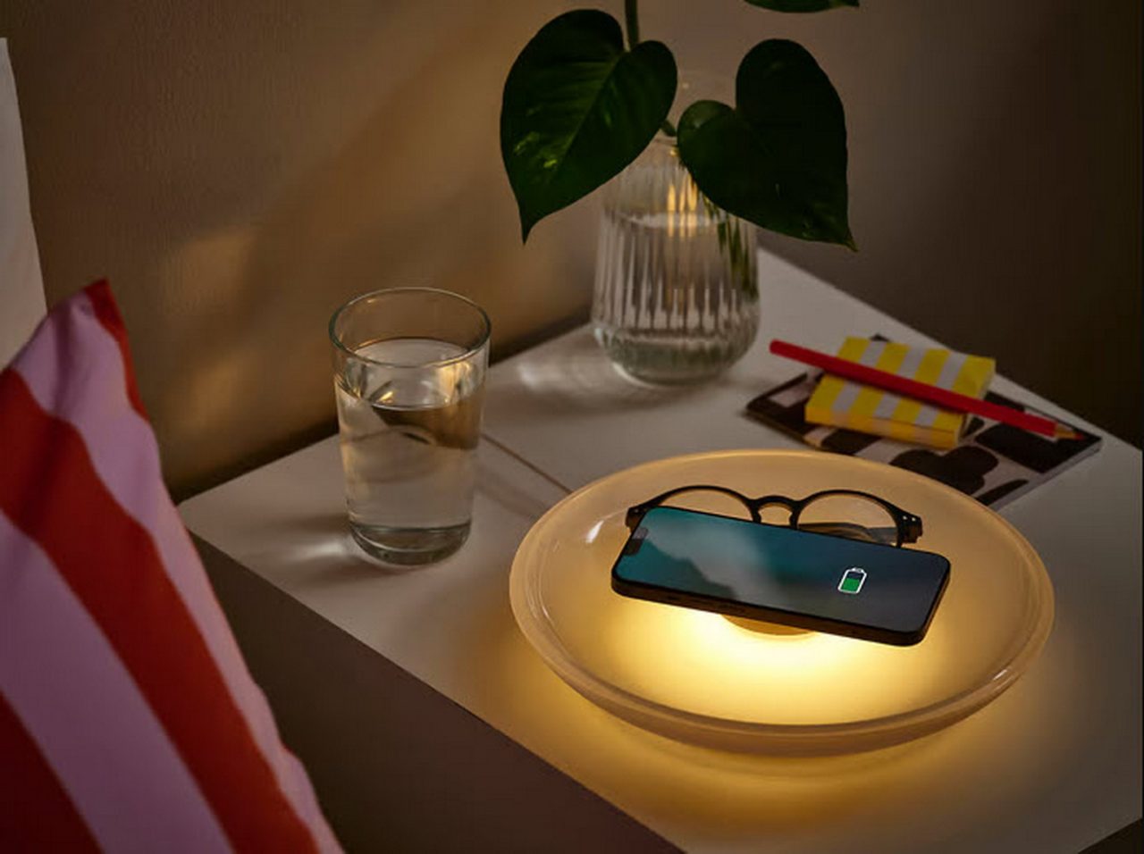 Αν από την άλλη θέλετε κάτι για το κομοδίνο σας, η IKEA κυκλοφόρησε επίσης μια έκδοση που ενσωματώνει φως. Έχει σχήμα μικρού μπολ με έναν στύλο φόρτισης στη μέση, και φυσικά εκεί μέσα μπορείτε να αφήνετε τα κλειδιά ή το πορτοφόλι σας όσο φορτίζει το κινητό.