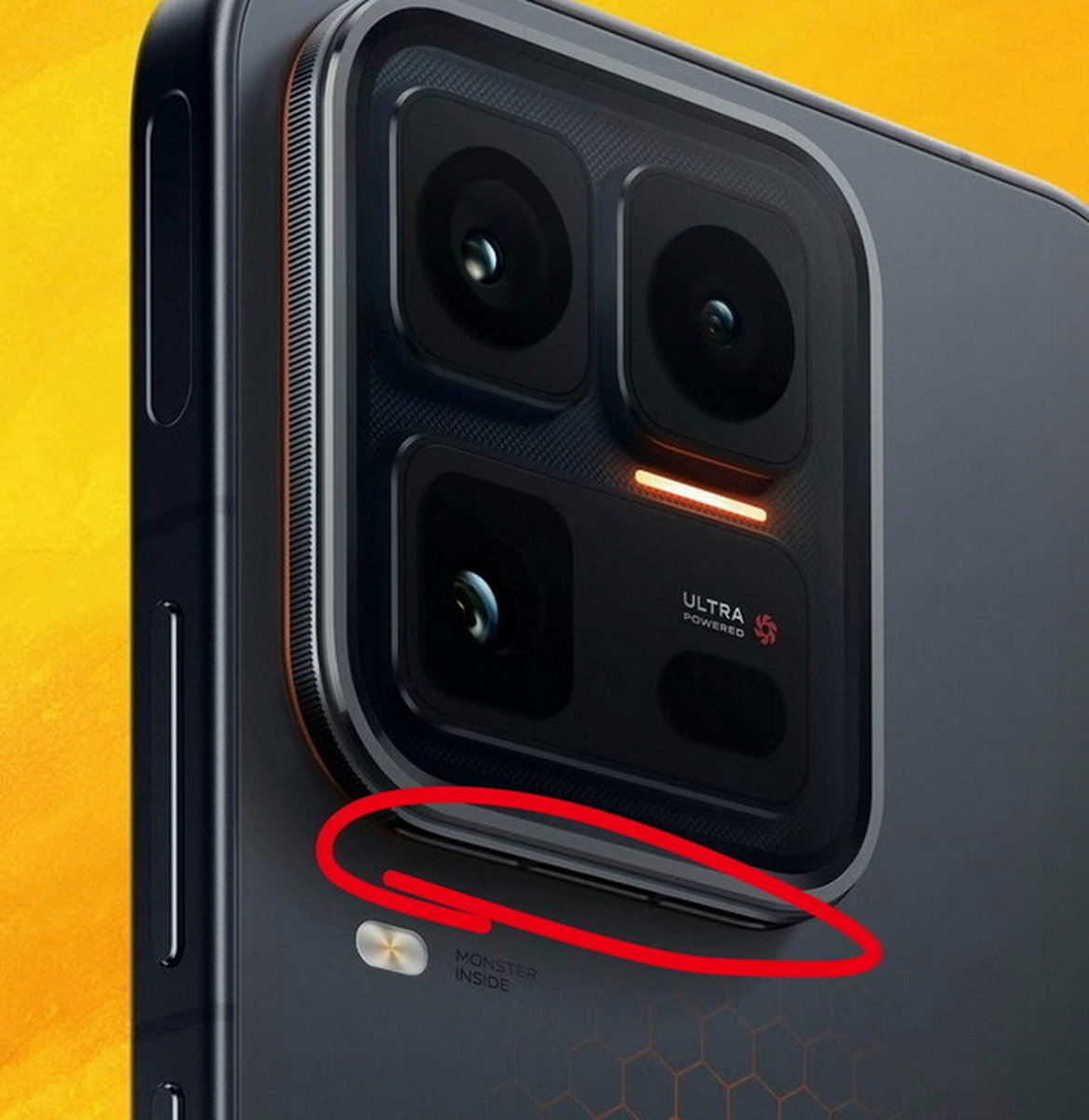 Κάτω από τη μονάδα της κάμερας, ορατά ανοίγματα υποδηλώνουν ειδικούς αεραγωγούς, οι οποίοι, σε συνδυασμό με το logo “ULTRA POWERED” και την εικόνα του ανεμιστήρα, επιβεβαιώνουν την παρουσία ενεργού συστήματος ψύξης. Αυτό όχι μόνο ενισχύει τη διαρκή απόδοση, αλλά επικοινωνεί οπτικά το DNA gaming της συσκευής.