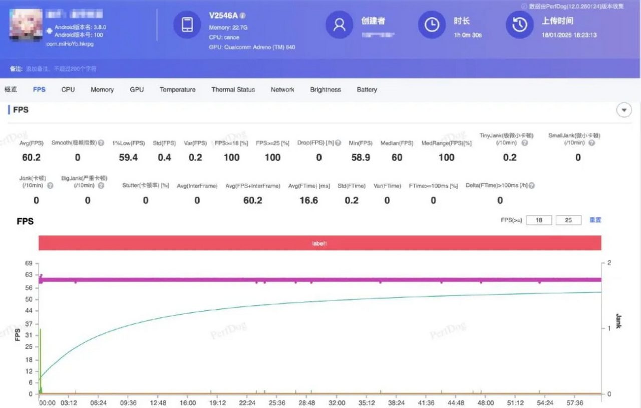 Οι μετρήσεις απόδοσης που κοινοποιήθηκαν επιβεβαιώνουν αυτούς τους ισχυρισμούς. Όταν τρέχει το Honkai Impact 3rd στις υψηλότερες ρυθμίσεις γραφικών, το iQOO 15 Ultra φέρεται να επιτυγχάνει μέσο ρυθμό καρέ 60,2 fps με 1% χαμηλό 59,4 fps, αριθμοί που αντικατοπτρίζουν τόσο σταθερότητα όσο και συνέπεια, δύο παράγοντες που έχουν μεγάλη σημασία για τους σοβαρούς gamers.