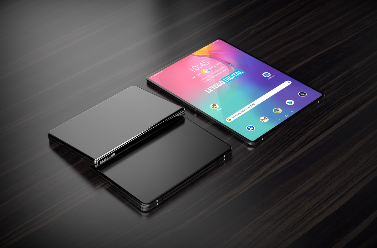 Πίσω στο αναδιπλούμενο tablet της Samsung τώρα..τα σχέδια της πατέντας έγιναν η βάση για να κάνουν τα μαγικά τους τα παιδιά του LetsGoDigital. Στις εικόνες βλέπουμε μια όμορφη συσκευή με μικρά bezels γύρω από την οθόνη η οποία διπλώνει σε ένα πιο βολικό μέγεθος.