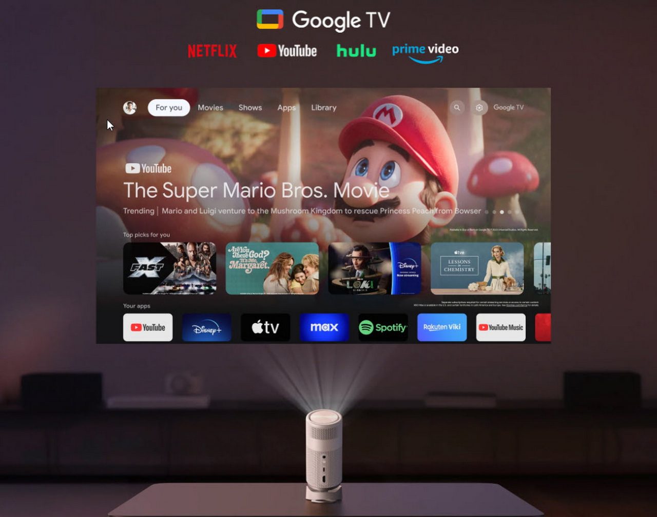 Διαθέτει επίσης ενσωματωμένη βάση ώστε να μπορείς να τον βάλεις σε κάθε γωνία που σε βολεύει ενώ η μπαταρία του μπορεί να διαρκέσει για δύο ώρες. Τέλειος δηλαδή για την πλειοψηφία των ταινιών. Φυσικά μπορείς πάντα να συνδέσεις power bank ή έναν φορτιστή για απεριόριστη απόλαυση. Ο έλεγχος του προβολέα γίνεται με τα φυσικά πλήκτρα στο επάνω μέρος, το τηλεχειριστήριο που περιλαμβάνεται ή ακόμη και ασύρματα χρησιμοποιώντας τη συνδεδεμένη συσκευή σου.
