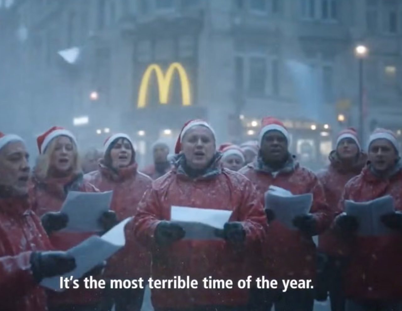 Μάλιστα, η κριτική που πήρε το διαφημιστικό κλιπ ήταν τόσο άσχημη που η εταιρεία απέσυρε άμεσα τη διαφήμιση. Το κλιπ διάρκειας 45 δευτερολέπτων βασίστηκε στην ιδέα ότι τα Χριστούγεννα είναι «η χειρότερη εποχή του χρόνου», και απεικονίζει διάφορα ατυχήματα που συμβαίνουν κατά την εορταστική περίοδο, από μπερδέματα με τα χριστουγεννιάτικα φώτα μέχρι τον Άγιο Βασίλη να κολλάει στην κίνηση. Η λύση, σύμφωνα με τη διαφήμιση, είναι να περάσεις τις γιορτές μέσα σε ένα McDonald’s.